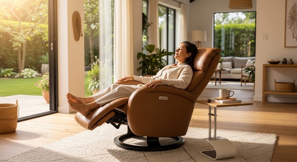There’s a physiological reason you feel calmer when reclined: the body interprets this position as “safe rest,” triggering the parasympathetic nervous system. Some premium models add heat therapy and massage, amplifying this effect.