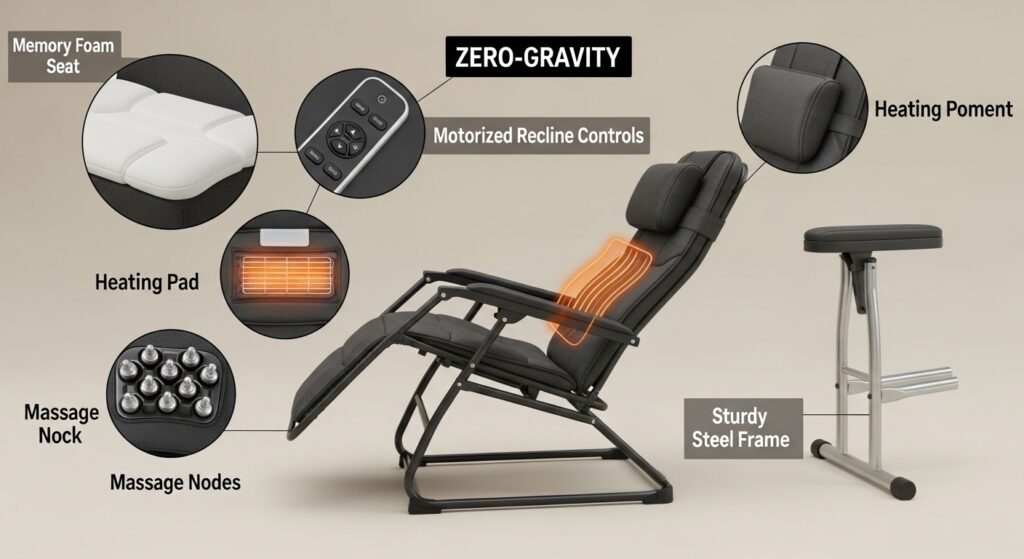Modern luxury zero gravity chairs often include: