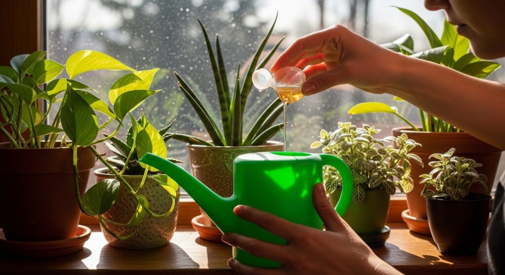 - During winter: Most houseplants go semi-dormant — reduce or stop feeding entirely.