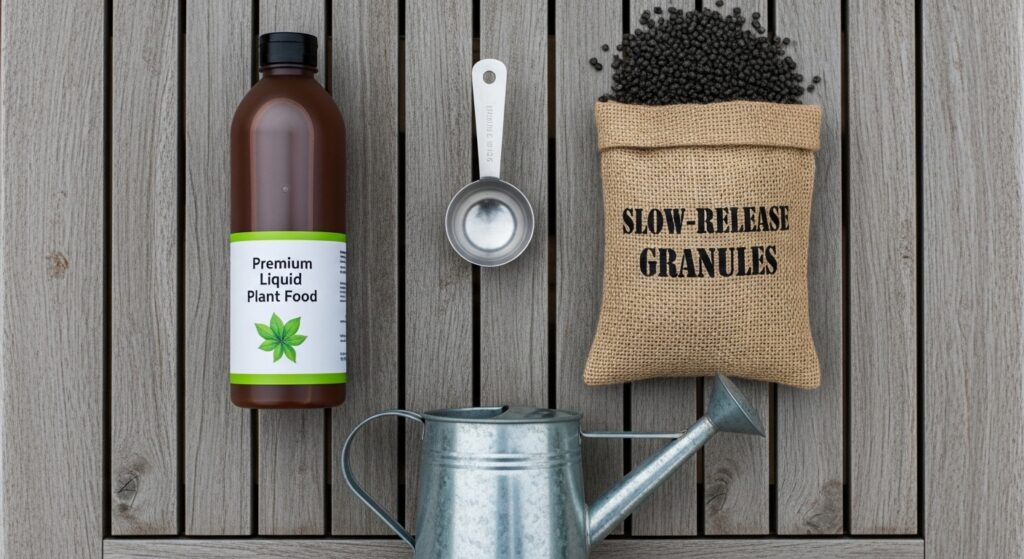 Popular liquid options include fish emulsion, seaweed extract, and synthetic liquid concentrates.