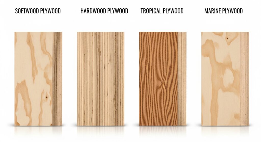 People often ask: “What are the 4 types of plywood?” The answer depends on how you classify them. The most practical way is by wood species category and intended use. Here’s the breakdown: