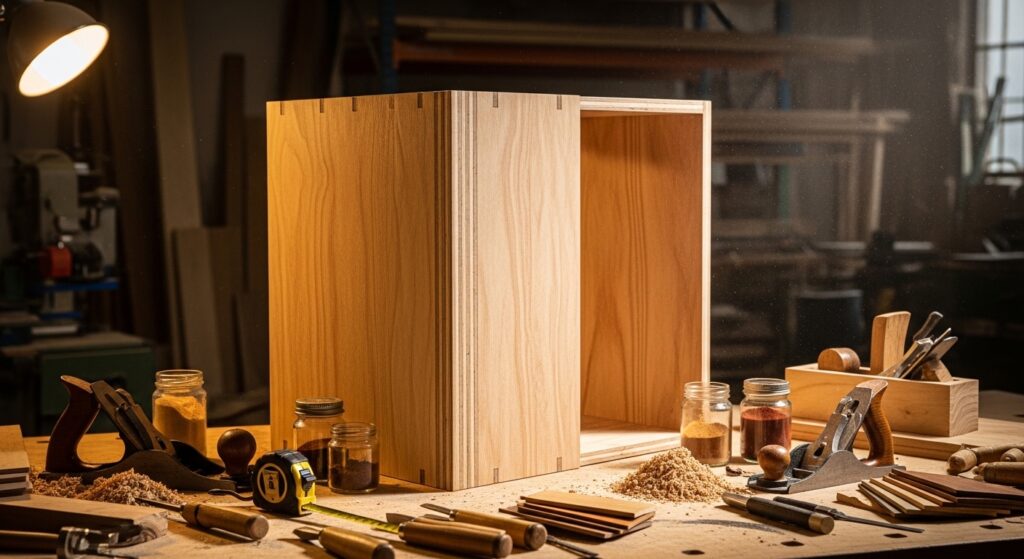 For most furniture projects, ¾” Baltic birch plywood is the professional’s choice. Its void-free core, consistent thickness, and attractive exposed edge make it ideal for case goods, shelving, and structural furniture components. For pieces that will be stained or have a natural finish, matched hardwood plywood (maple, walnut, cherry, or oak face) with a veneer core is the premium option.