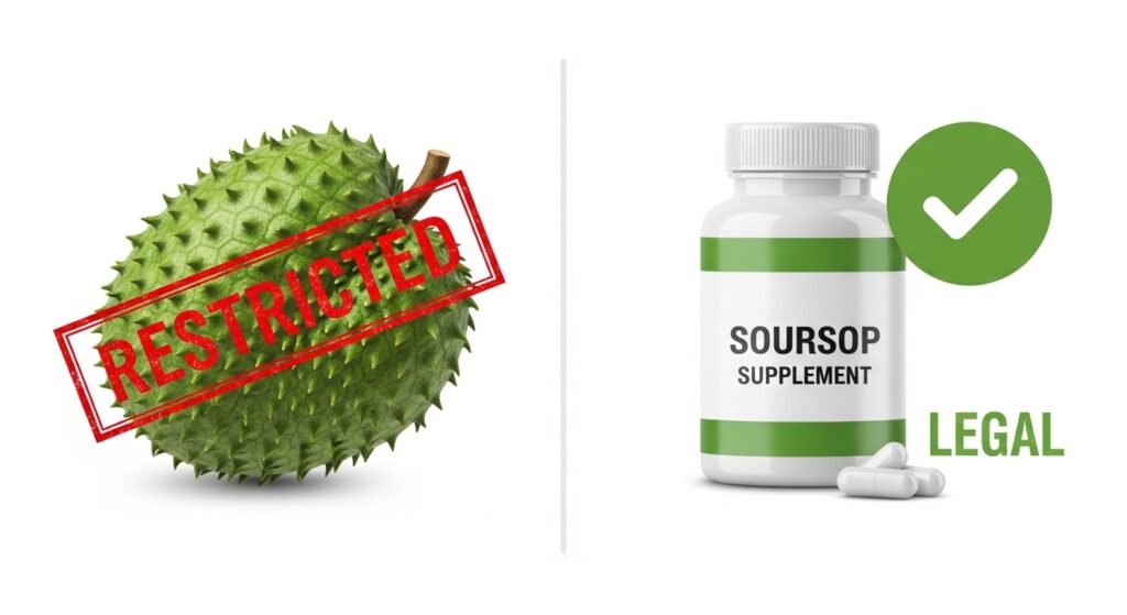 Key takeaway: No major Western country has an outright ban on soursop as a food or supplement. Restrictions relate to fresh fruit imports (agriculture) and to health claims on product labels (consumer protection).